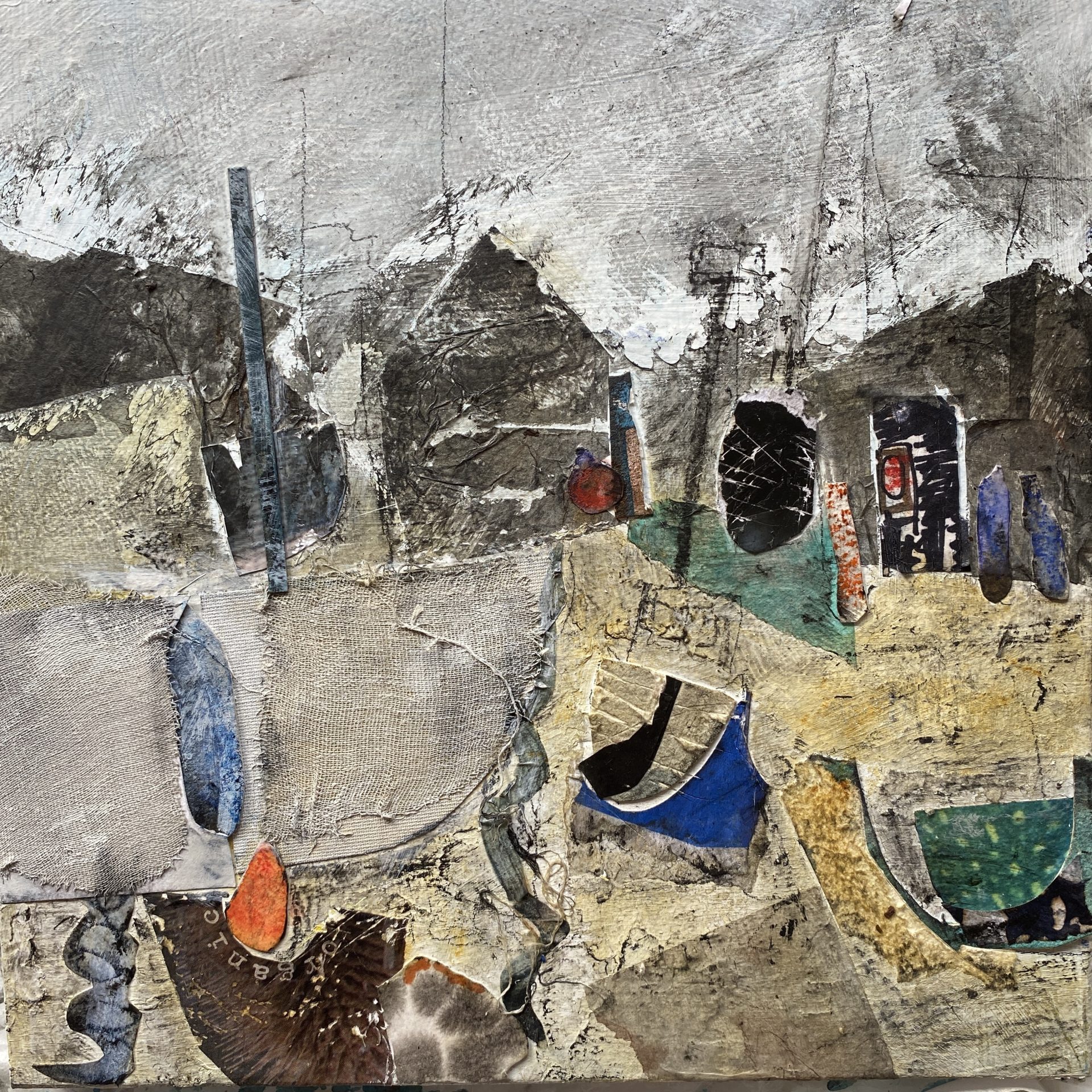 Blackshore winter 1. Collage and mixed media on 25cm cradled board. (SOLD)